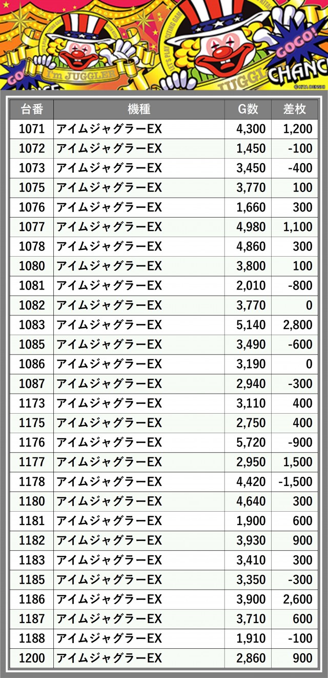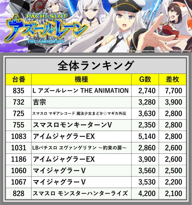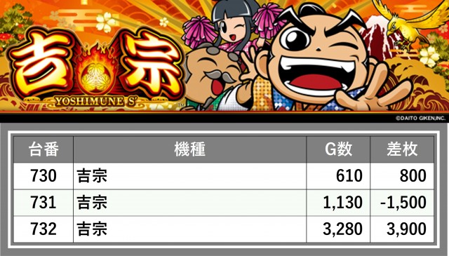 厳選された取材対象機種をはじめ、その他スロット全体から好記録が飛び出した!プレイヤーが楽しんだ1日を下記データにて振り返ってみて欲しい。
