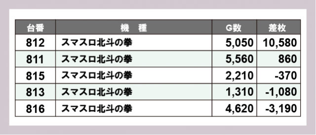 ※差枚数順に掲載しています