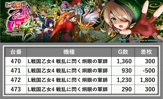 厳選された取材対象機種をはじめ、その他スロット全体から好記録が飛び出した!プレイヤーが楽しんだ1日を下記データにて振り返ってみて欲しい。