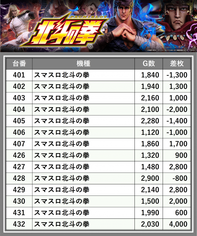 ※台番順に掲載しています
