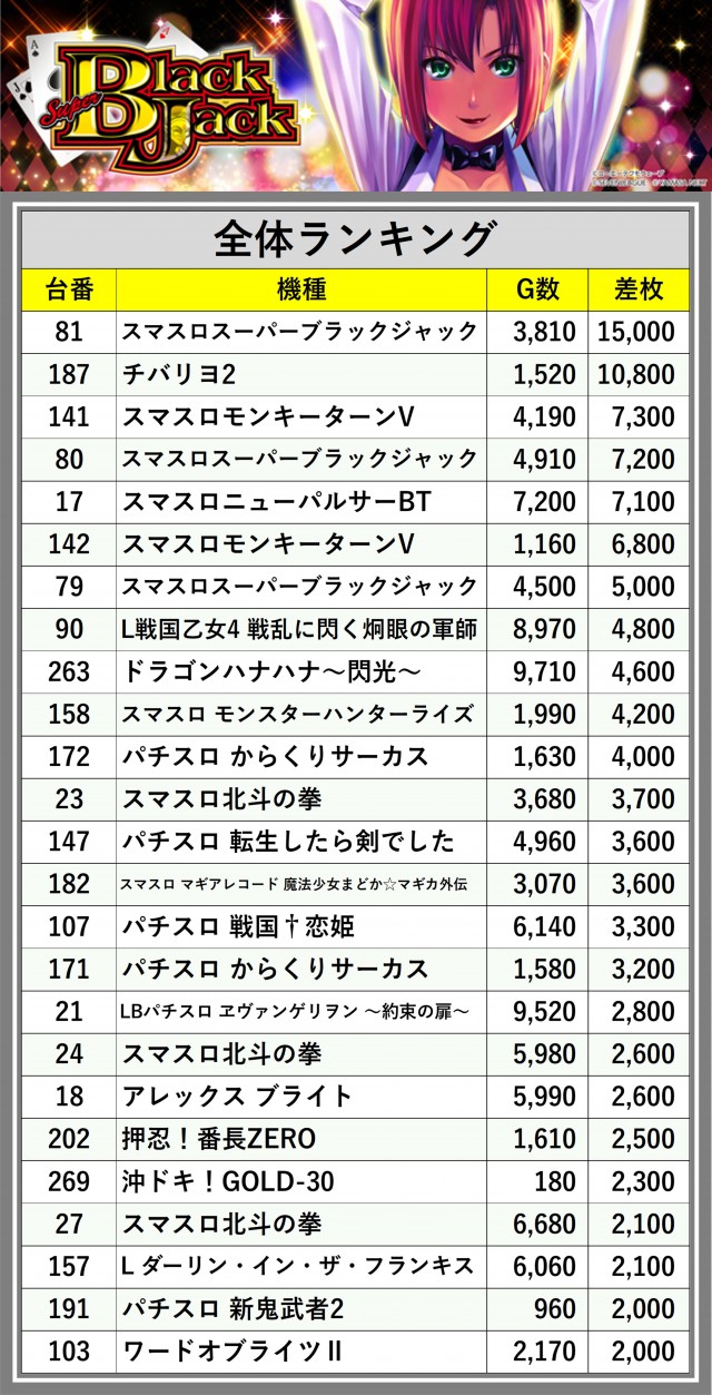 ※差枚数順に掲載しています
