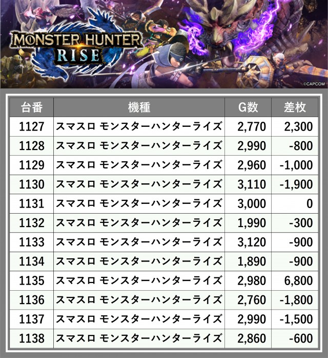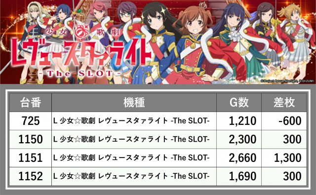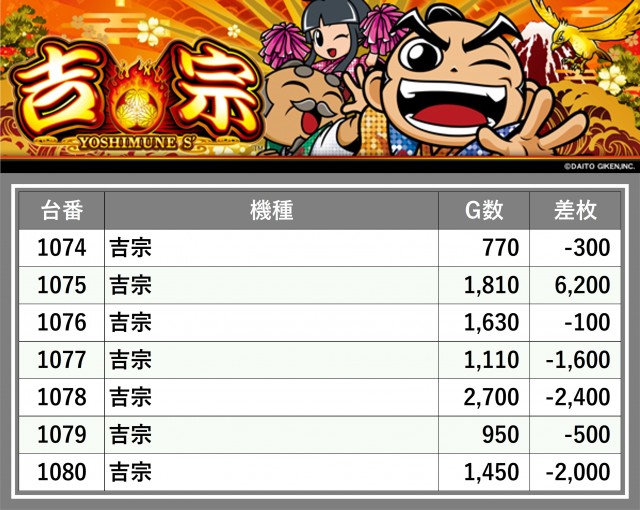 厳選された取材対象機種をはじめ、その他スロット全体から好記録が飛び出した!プレイヤーが楽しんだ1日を下記データにて振り返ってみて欲しい。