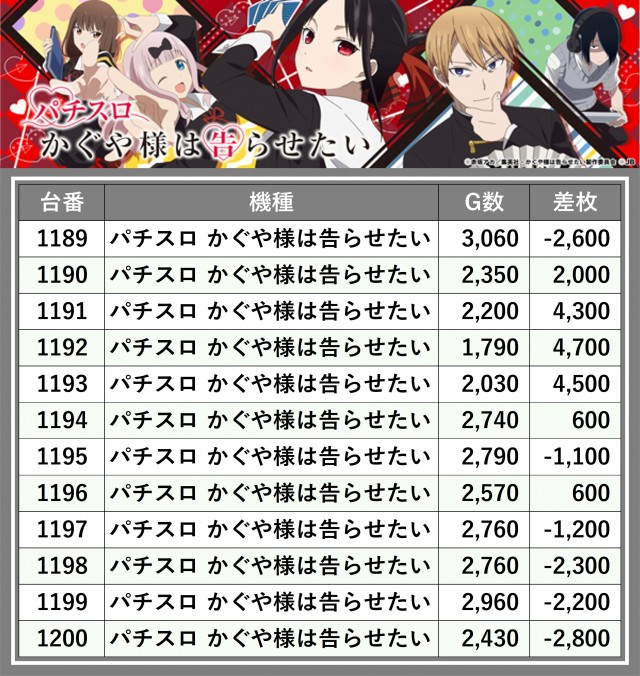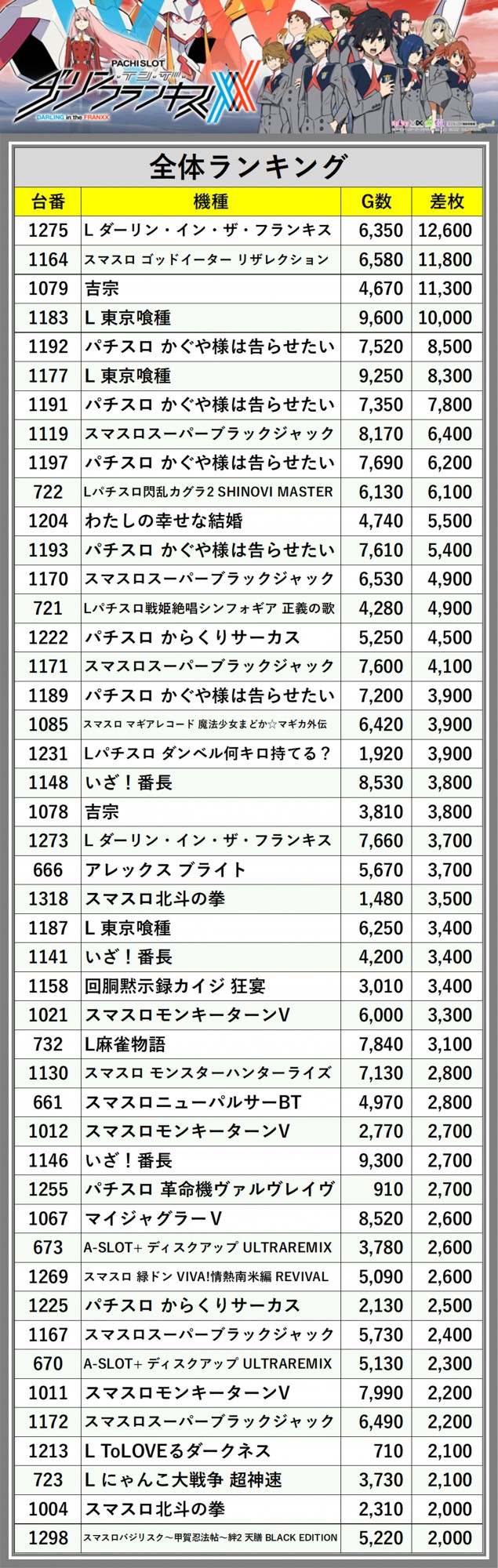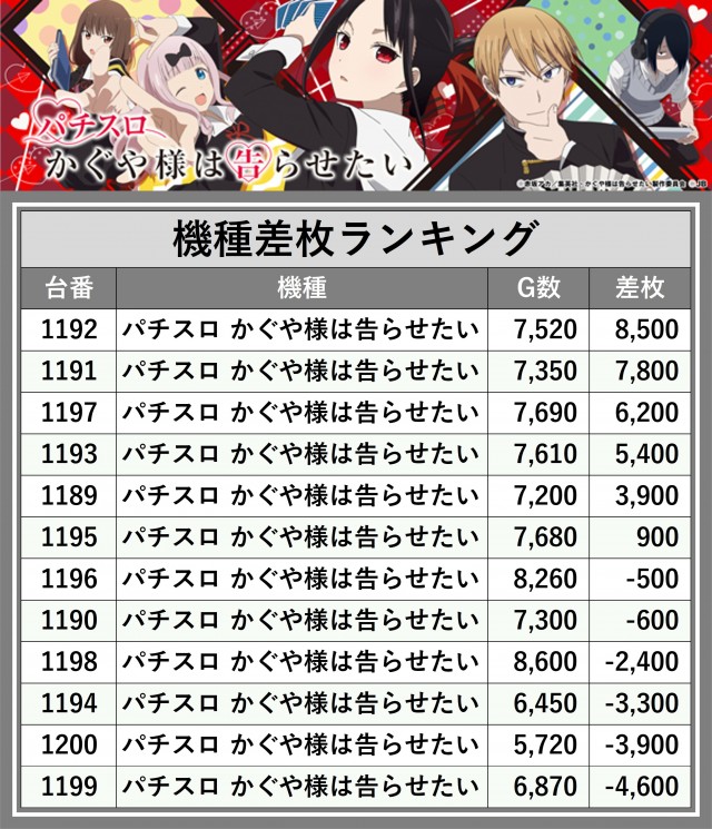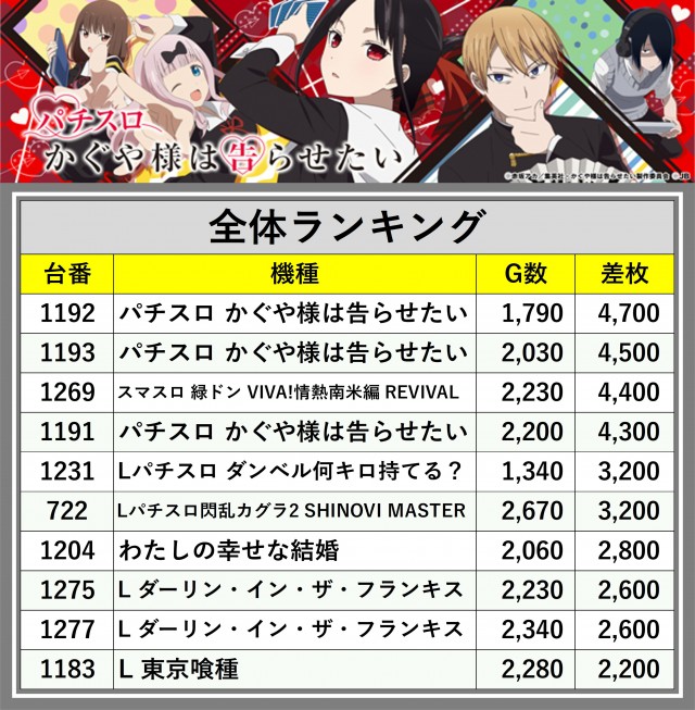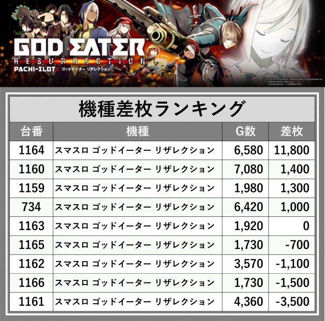 ※差枚数順に掲載しています