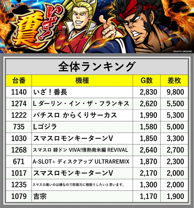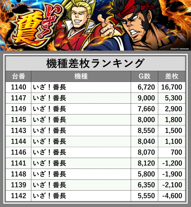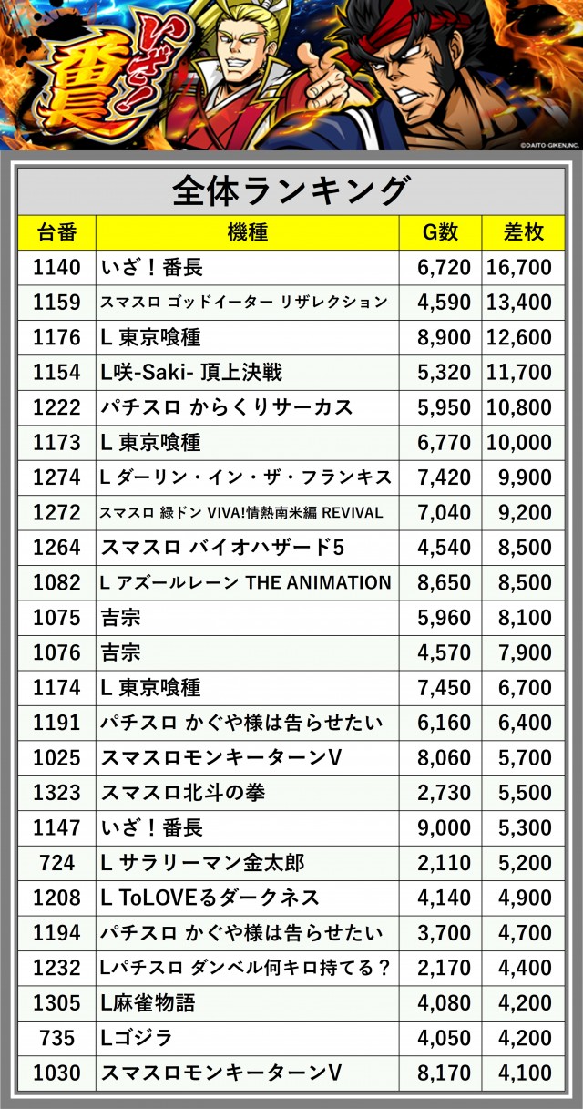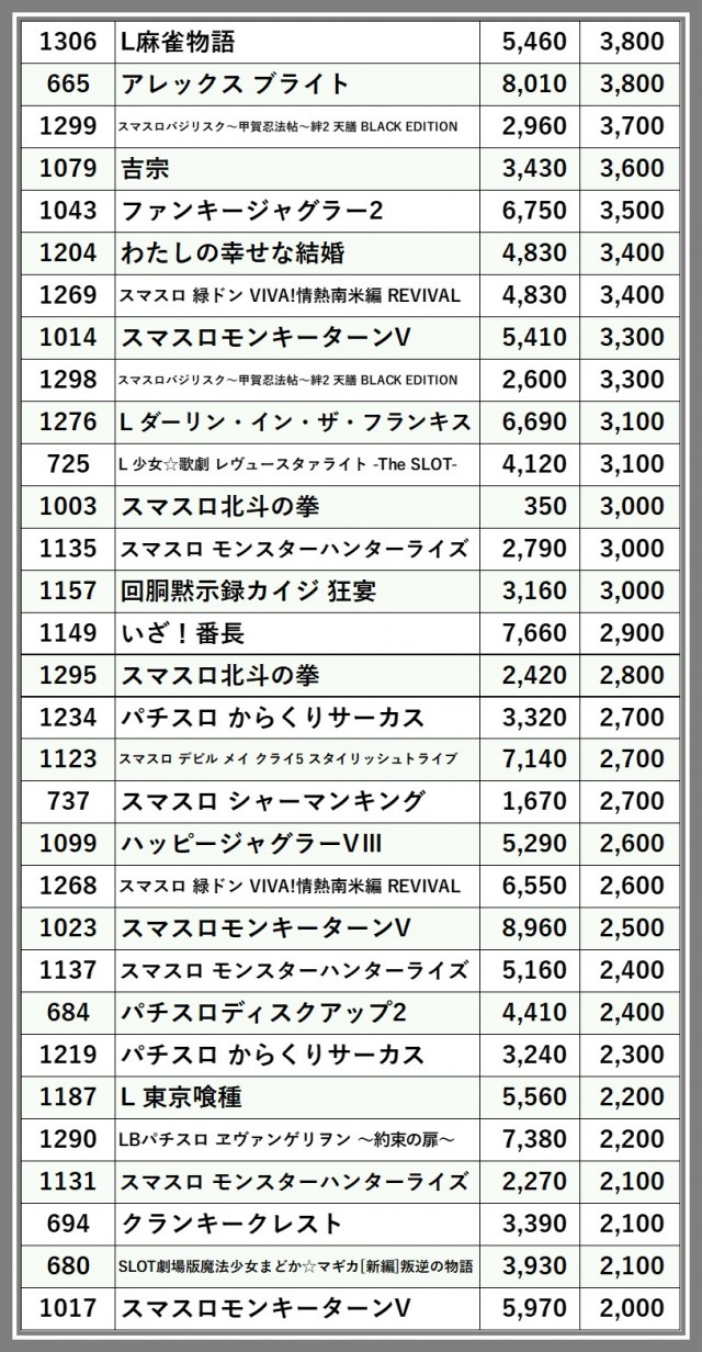 ※差枚数順に掲載しています