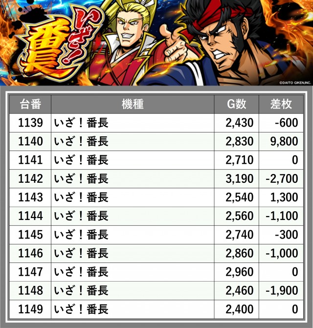※台番順に掲載しています