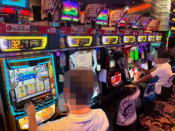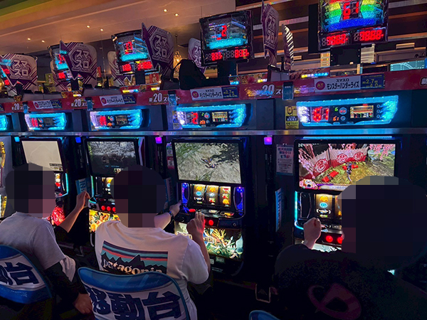 1000円/160枚パチスロの稼働も高い。プレイヤーたちが楽しそうにレバーを叩く姿を目撃している。