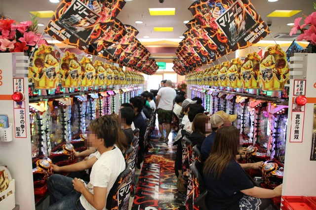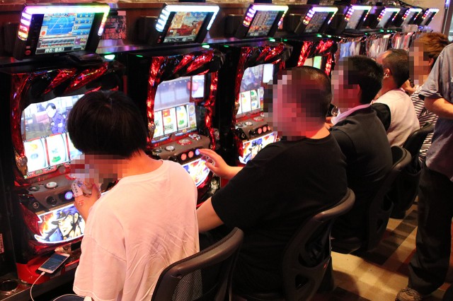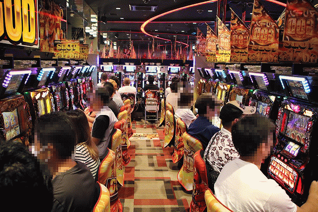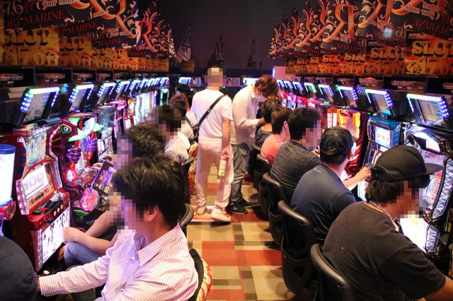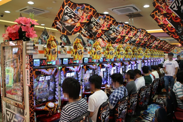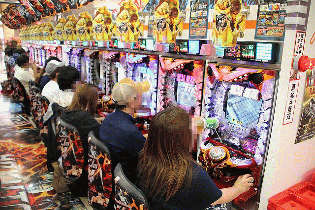 特に賑わったのがパチスロコーナー。あっという間に稼働率は100%の満台稼働を見せた。