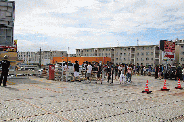 気付けば、整列スペースの一部となった駐車場2階は、360°見渡す限り、抽選待ちのファンで賑わっていた。