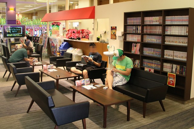 店内にはゆったりした空間が広がる休憩コーナーも用意。漫画を片手にリラックス!し放題なので、長時間遊技や、ちょっとした待ち時間でもモーマンタイ(無問題)だ。