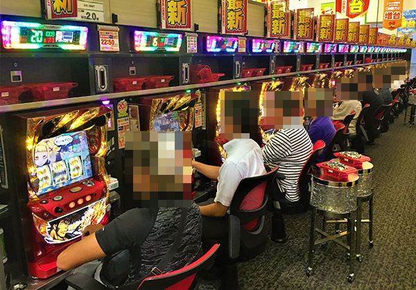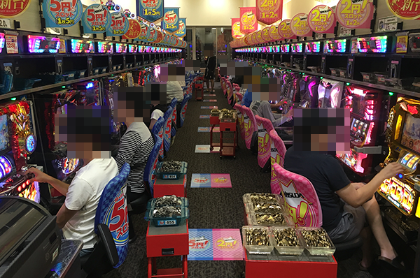 20円パチスロでは、新台の「盗忍!剛衛門」や「バジリスク~甲賀忍法帖~絆」、「沖ドキ!」が盛況。機種の魅力を堪能しているといったプレイヤーの明るい表情が印象的であった。