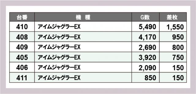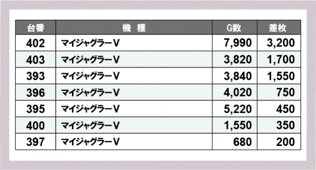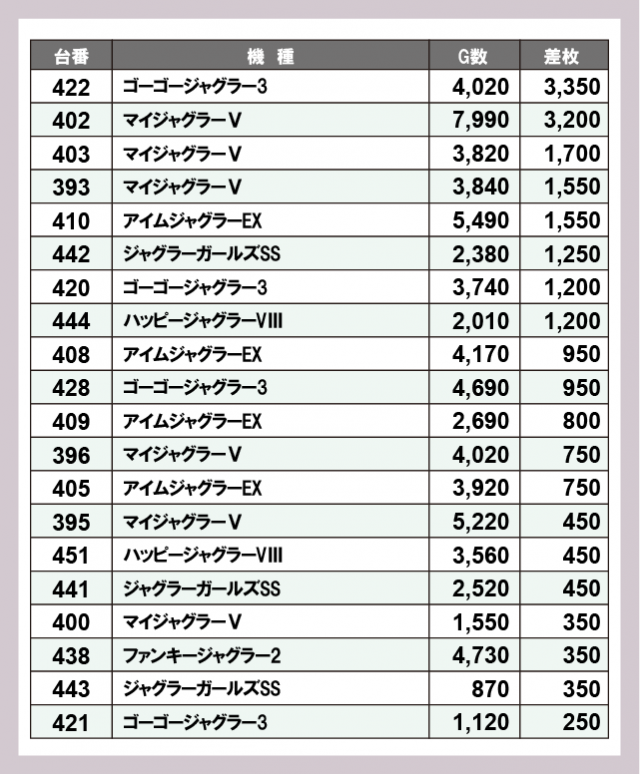 ジャグラー差枚ランキング