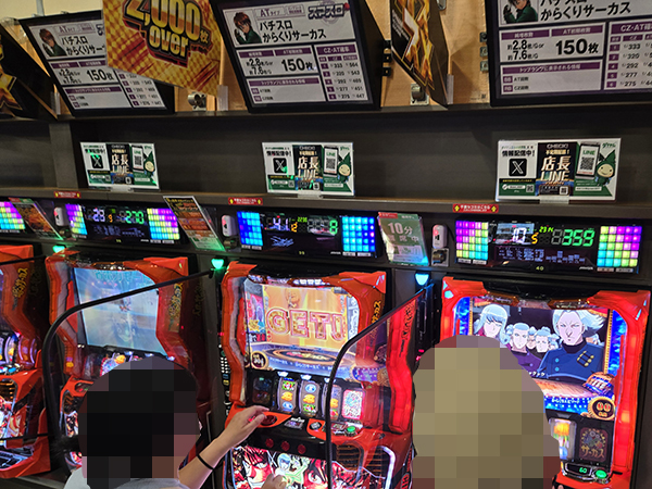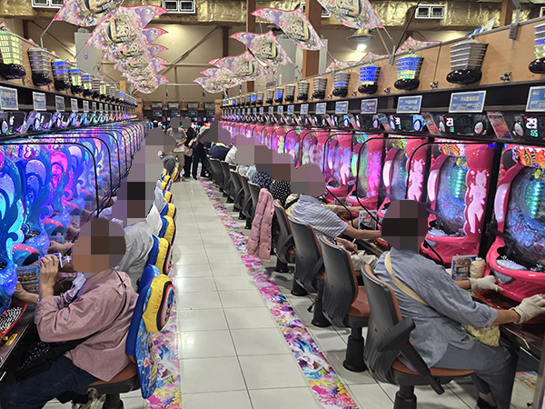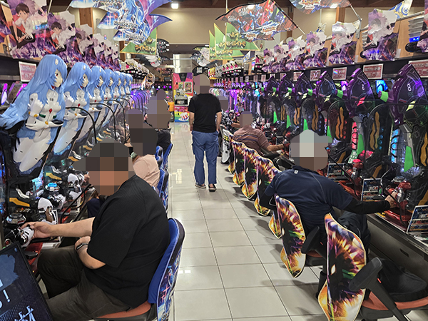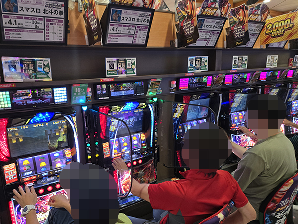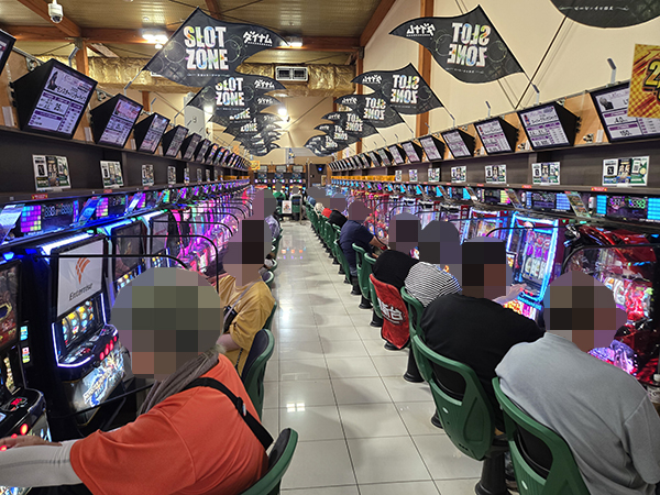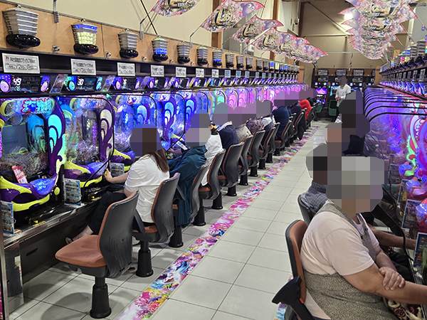 取材時は既に多くのプレイヤーが集結し、パチンコ・パチスロを問わずにぎやかな状況となっていた。