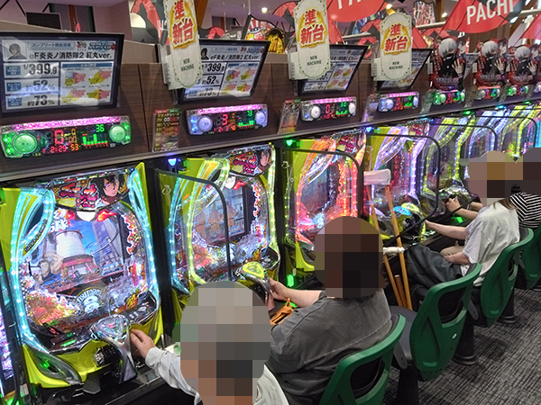 14時ごろの4円パチンコの様子を見ると「P大海物語5スペシャル」や「eフィーバー炎炎ノ消防隊2 紅丸ver.」が大盛り上がり。機種性能を存分に発揮するプレイヤーを目の当たりにしている。