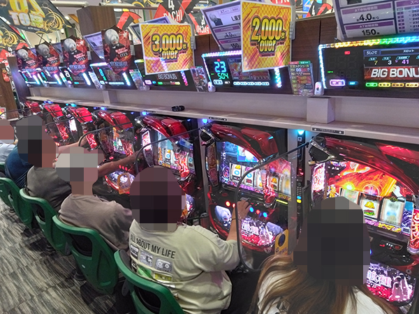 取材時は既に多くのプレイヤーであふれており、パチンコ・パチスロを問わず楽しげな表情でいっぱいだった。