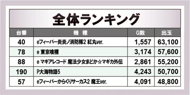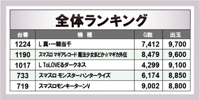 ※出玉数順に掲載しています