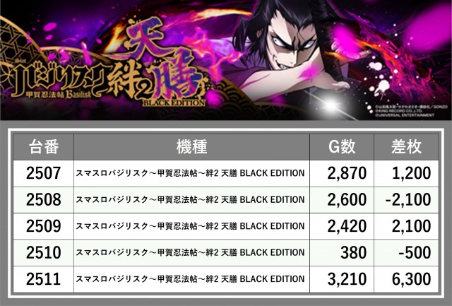 厳選された取材対象機種をはじめ、その他スロット全体から好記録が飛び出した!プレイヤーが楽しんだ1日を下記データにて振り返ってみて欲しい。
