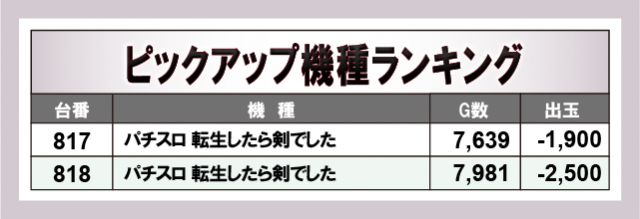 ※出玉数順に掲載しています