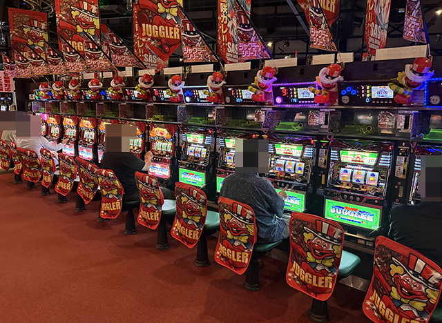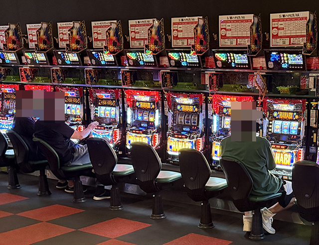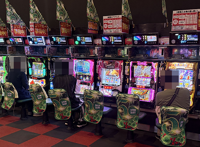 店内をみると、「スマスロ北斗の拳」や「スマスロバジリスク~甲賀忍法帖~絆2 天膳 BLACK EDITION」に活躍をしている姿があった。