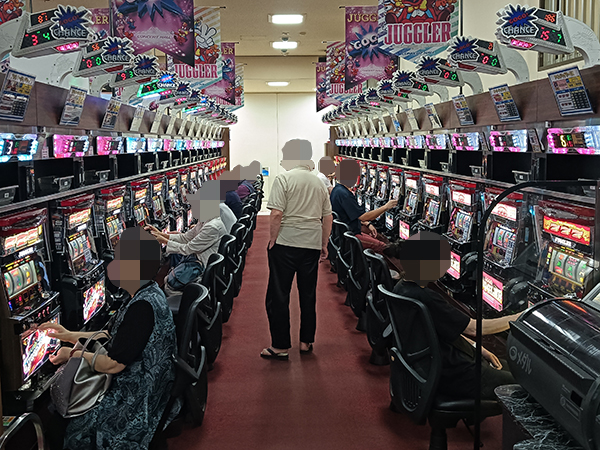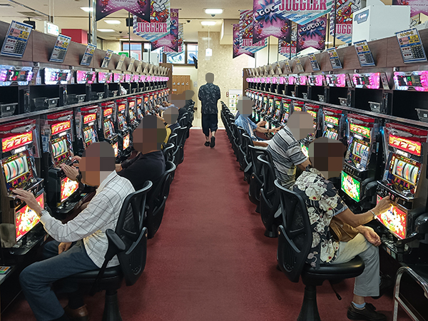 20円パチスロをチェックすると、「アイムジャグラーEX」や「ファンキージャグラー2」といったジャグラーシリーズで好調なプレイヤーを確認。納得の表情がそこかしこで見られた。