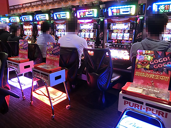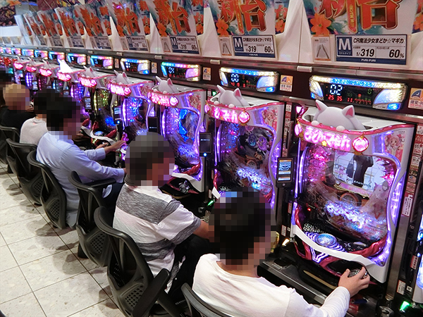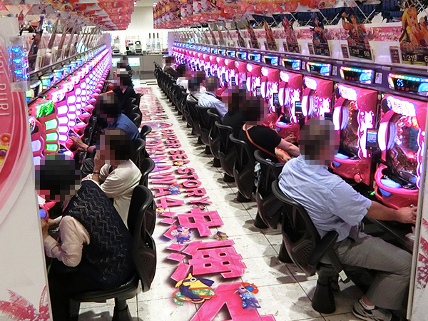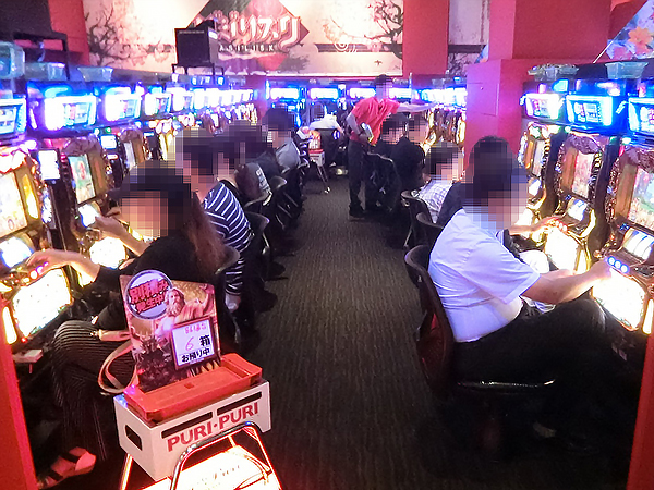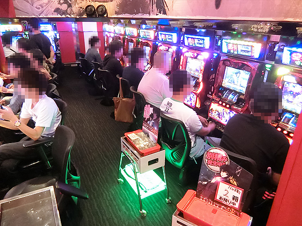 取材時、店内には既に多くのプレイヤーが集結しており、パチンコ・パチスロを問わずにぎやかな状況となっていた。