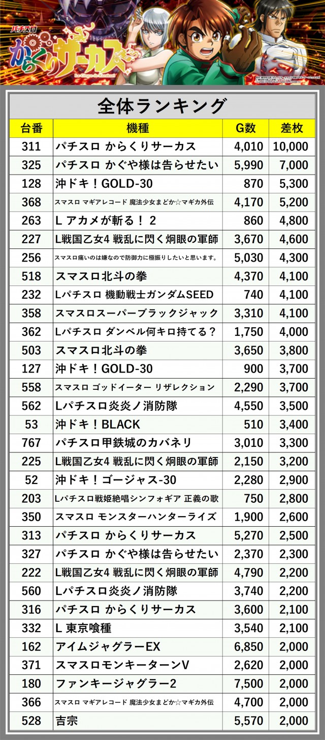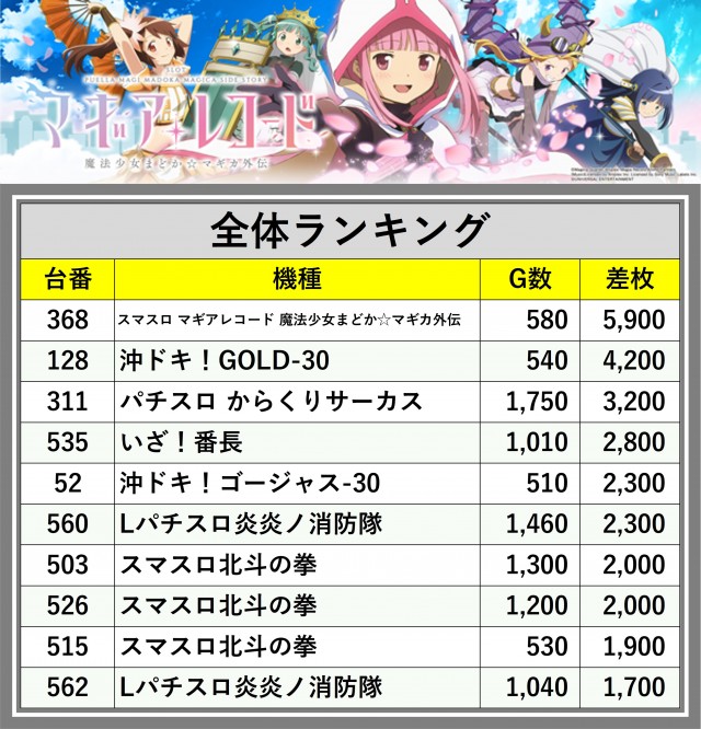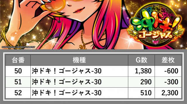 厳選された取材対象機種をはじめ、その他スロット全体から好記録が飛び出した!プレイヤーが楽しんだ1日を下記データにて振り返ってみて欲しい。