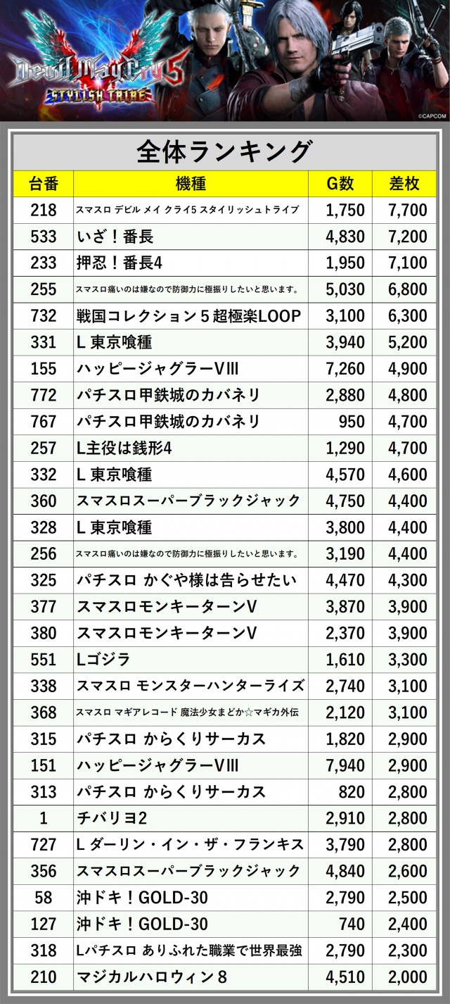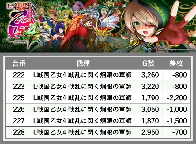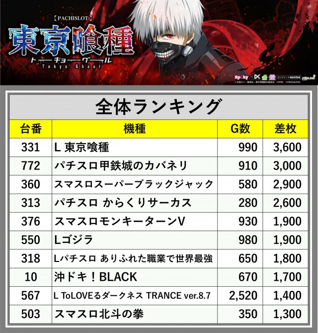 厳選された取材対象機種をはじめ、その他スロット全体から好記録が飛び出した!プレイヤーが楽しんだ1日を下記データにて振り返ってみて欲しい。