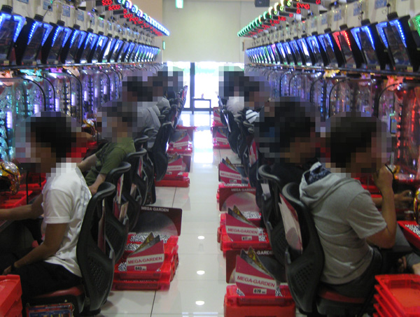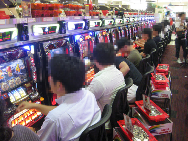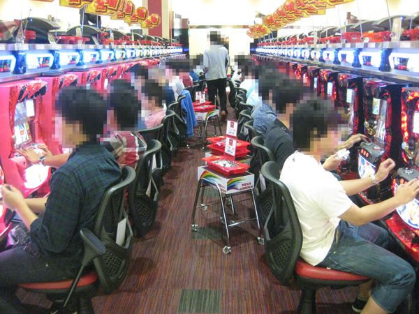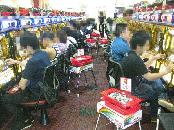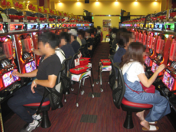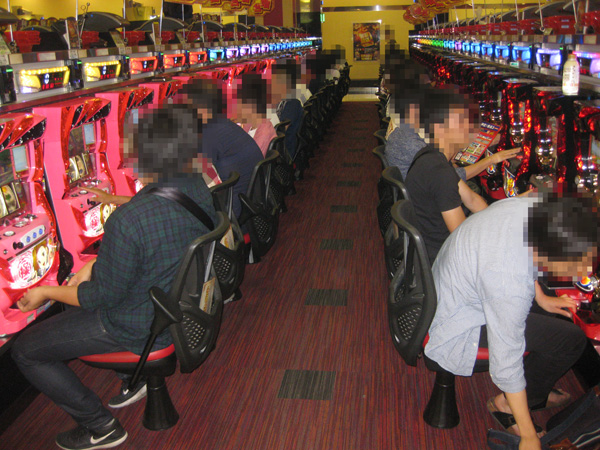 「バジリスク〜甲賀忍法帖〜絆」や「押忍!番長3」など、人気機種を筆頭にフル稼働状態の機種が多数。これから始まる展開に期待を込めているのか、表情も真剣そのものだった。