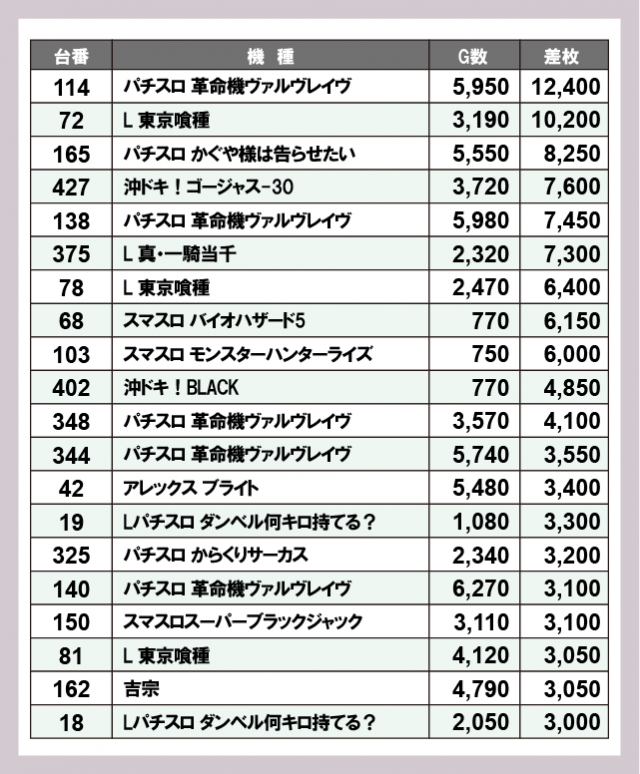機種別差枚ランキング