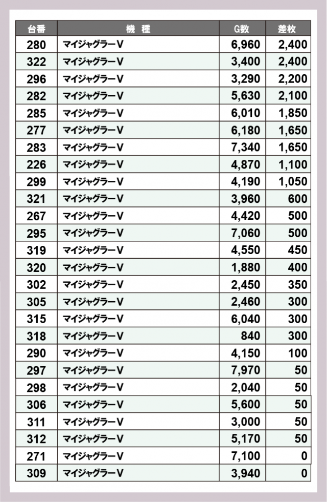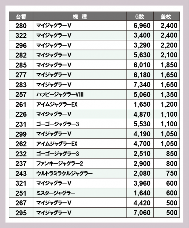ジャグラー差枚ランキング