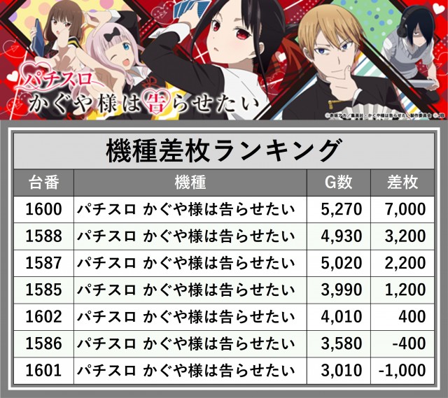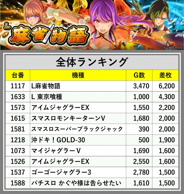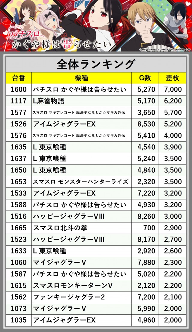 ※差枚数順に掲載しています
