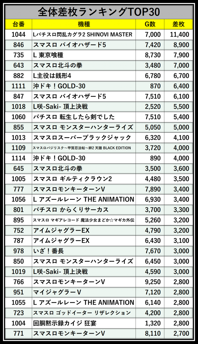 その結果の中から、ぱちタウンが注目すべきポイントを厳選してユーザーにお届け!プレイヤーが楽しんだ一日を下記データにて振り返ってみて欲しい。