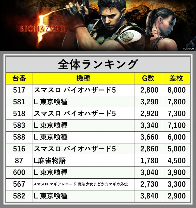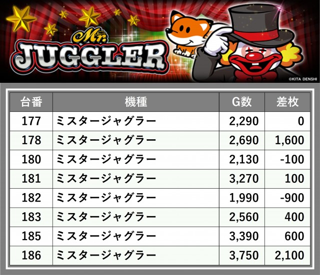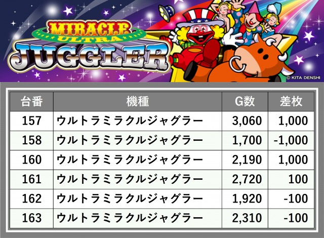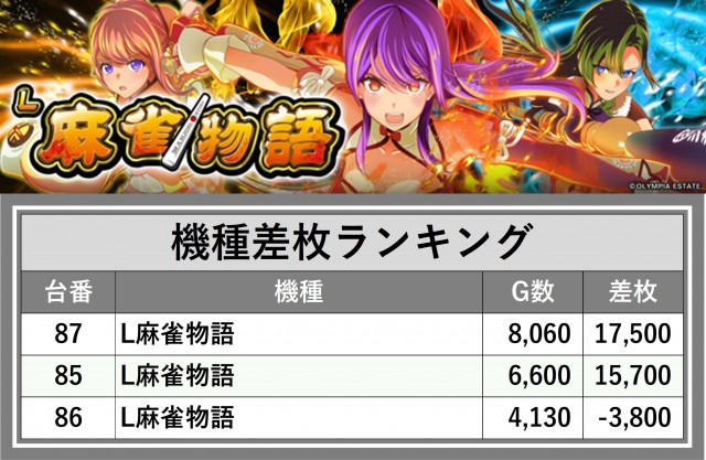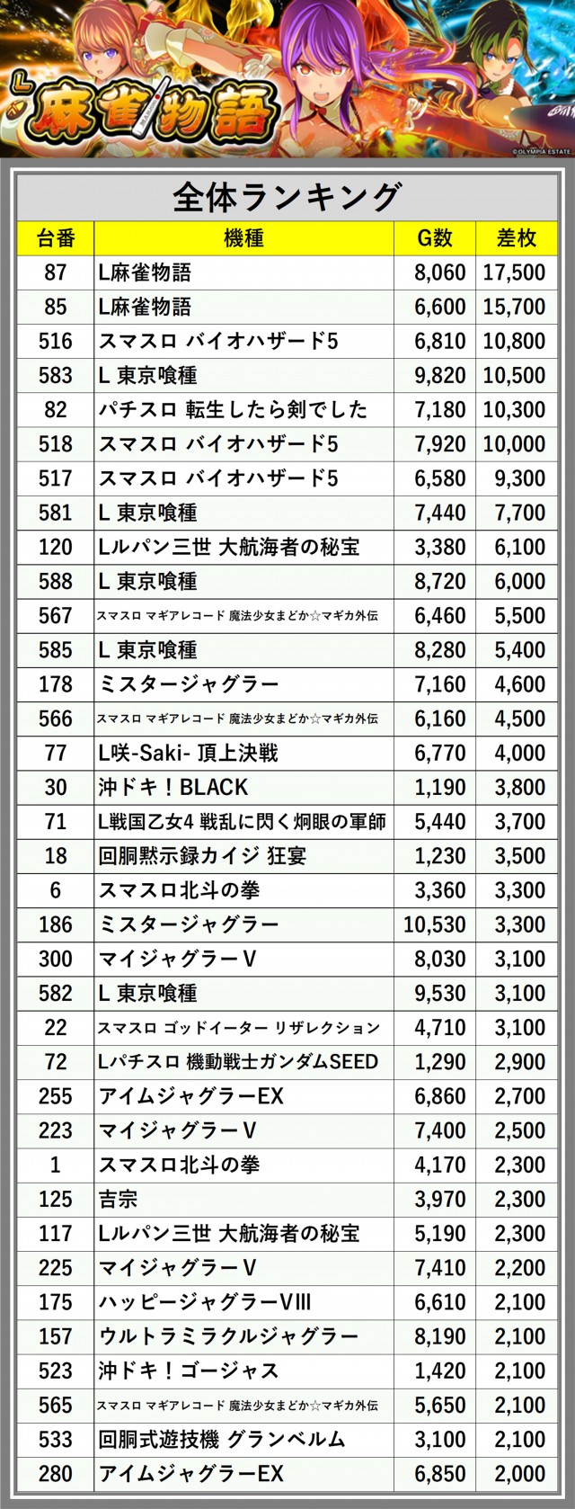 厳選された取材対象機種をはじめ、その他スロット全体から好記録が飛び出した!プレイヤーが楽しんだ1日を下記データにて振り返ってみて欲しい。