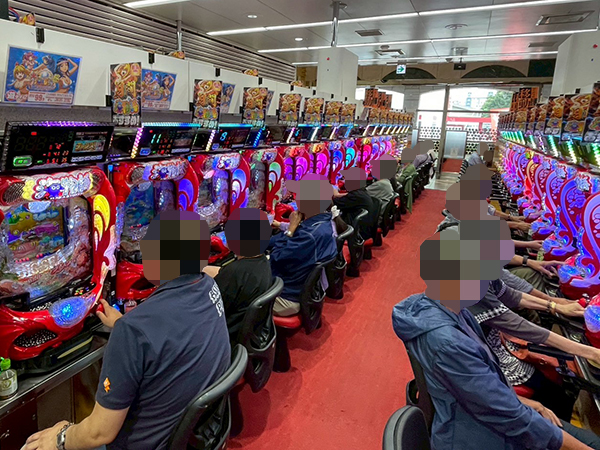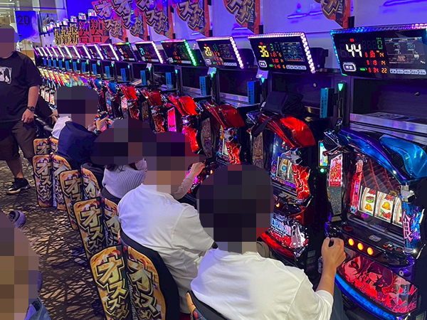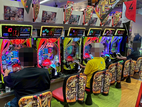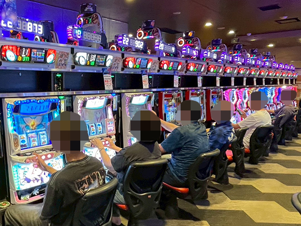 取材時は既に多くのプレイヤーであふれており、パチンコ・パチスロを問わず楽しげな表情でいっぱいだった。