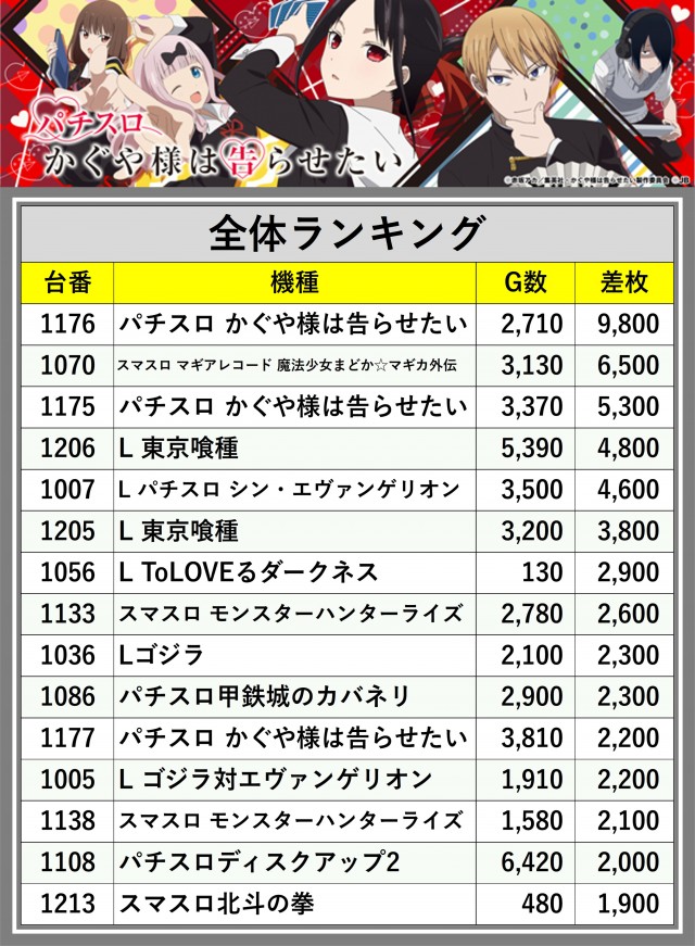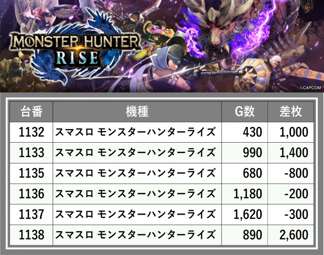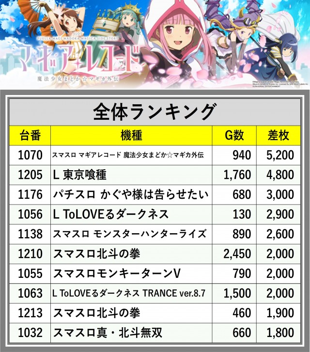 厳選された取材対象機種をはじめ、その他スロット全体から好記録が飛び出した!プレイヤーが楽しんだ1日を下記データにて振り返ってみて欲しい。