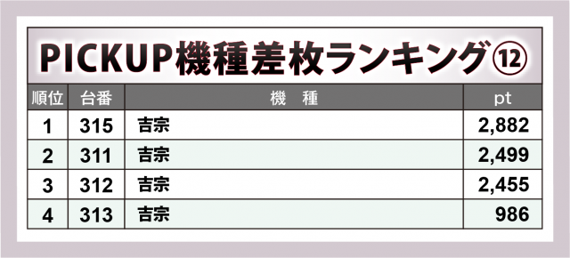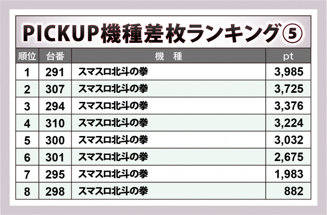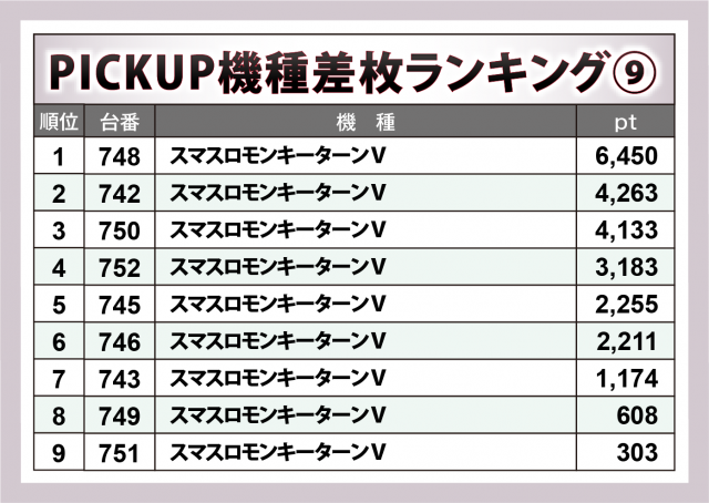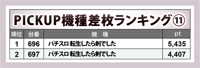その他にも『スマスロ バイオハザード5』318番台が+7千8百超、『パチスロ からくりサーカス』783番台が+7千3百超、『L 東京喰種』では773番台が+6千超&775番台が+5千3百超、『L サラリーマン金太郎』709番台が+5千6百弱、『いざ!番長』1039番台が+5千1百超と、幅広いラインナップが好調だった。