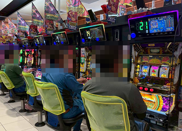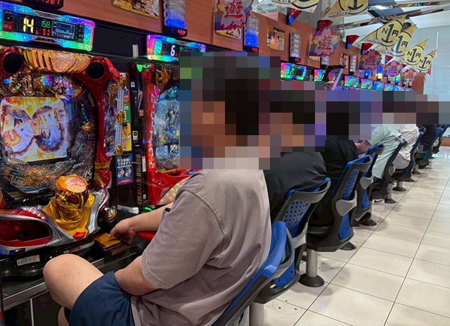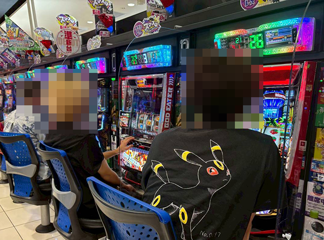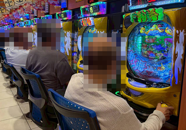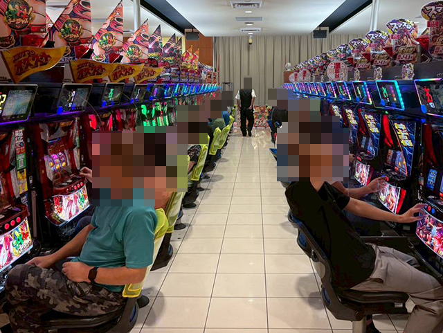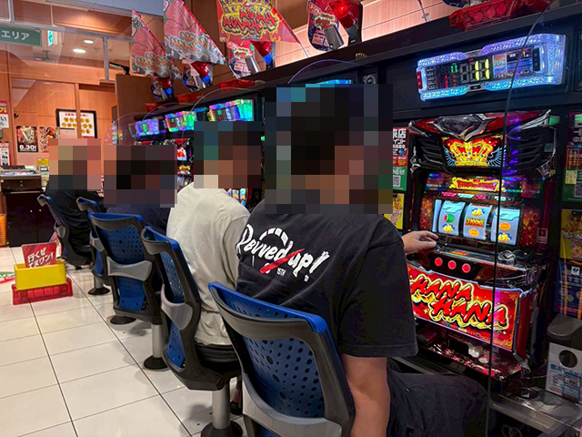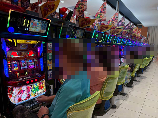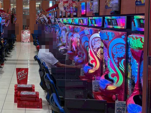 店内をまわっていると、パチンコとパチスロの両方で、決意が感じられるシーンを目にした。