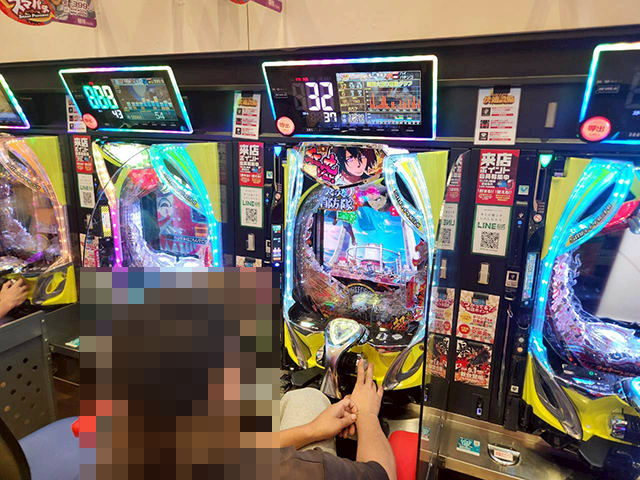 「eフィーバー炎炎ノ消防隊2 紅丸ver.」でも、プレイヤーはうれしそうに遊技中。