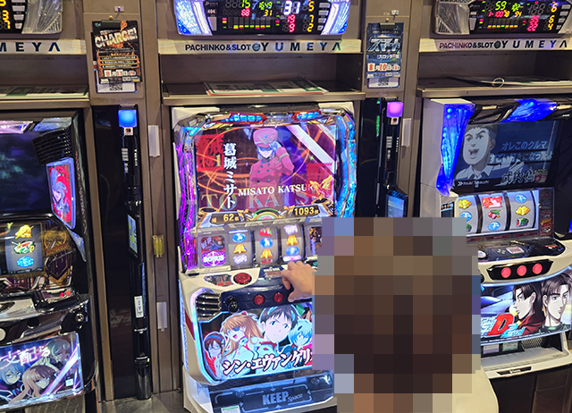 「L パチスロ シン・エヴァンゲリオン」や「パチスロ からくりサーカス」にも持ち玉で遊技をおこなう姿があり、にぎわいが感じられた。