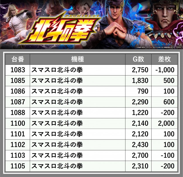 ※台番順に掲載しています