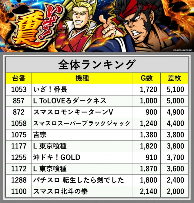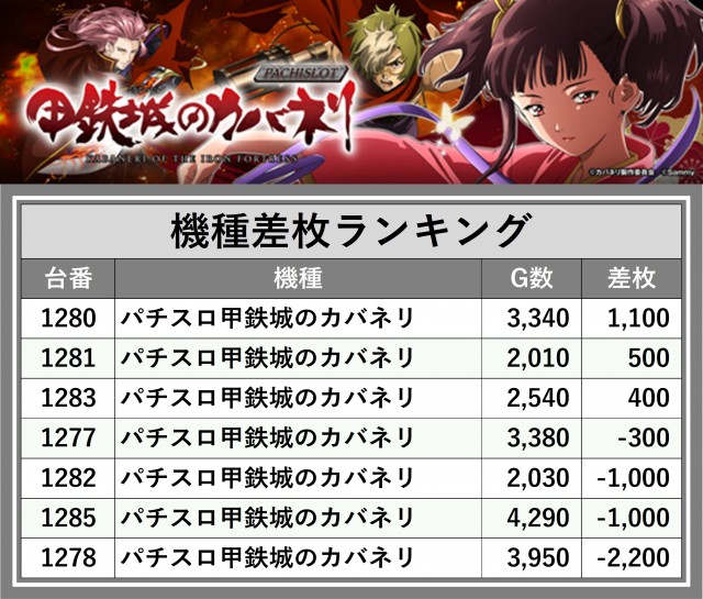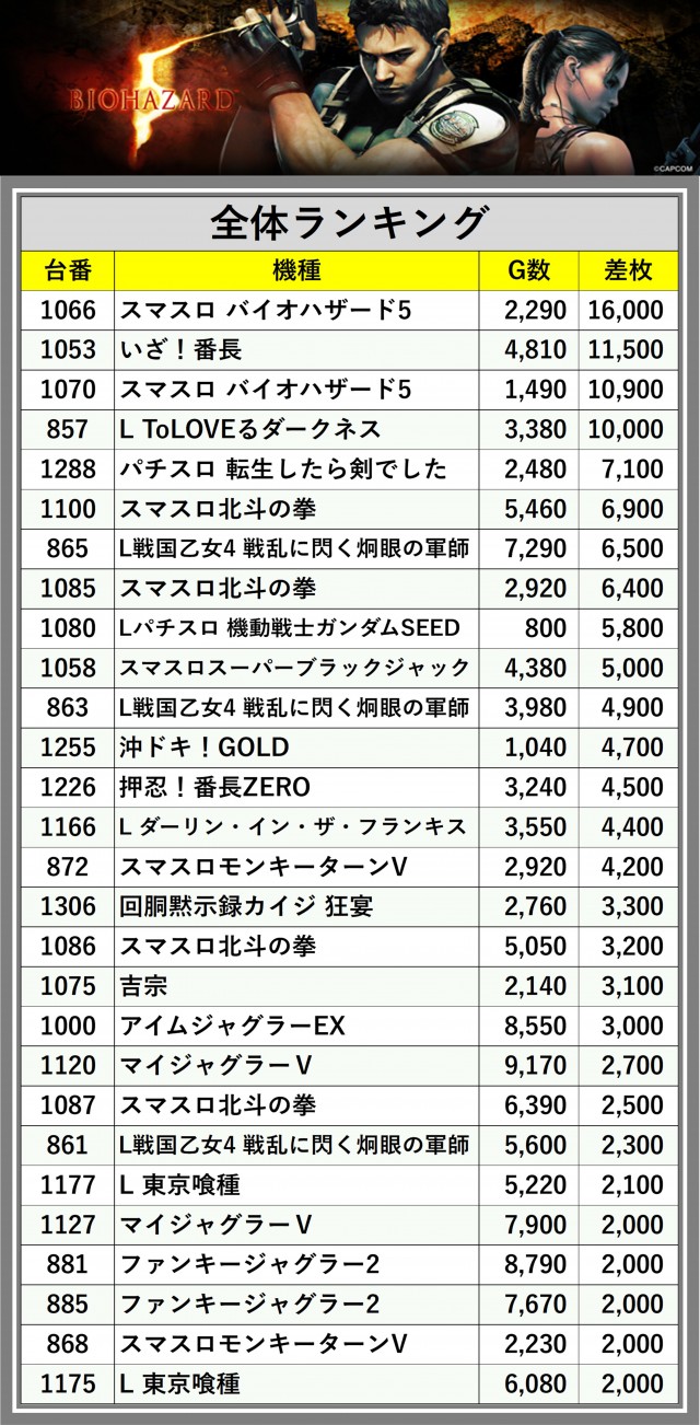 ※差枚数順に掲載しています