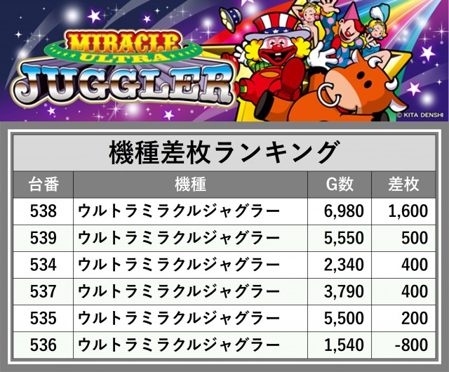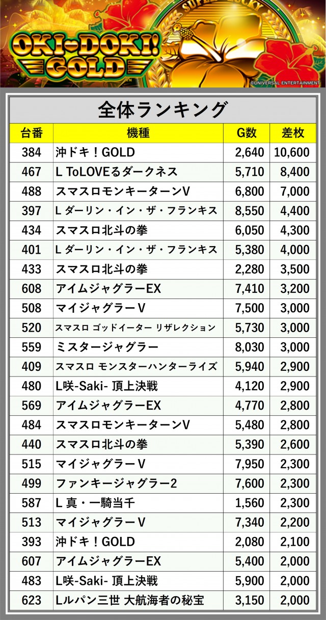 ※差枚数順に掲載しています