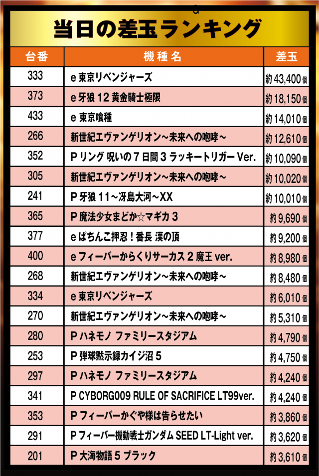 当日のパチンコランキングも必見!