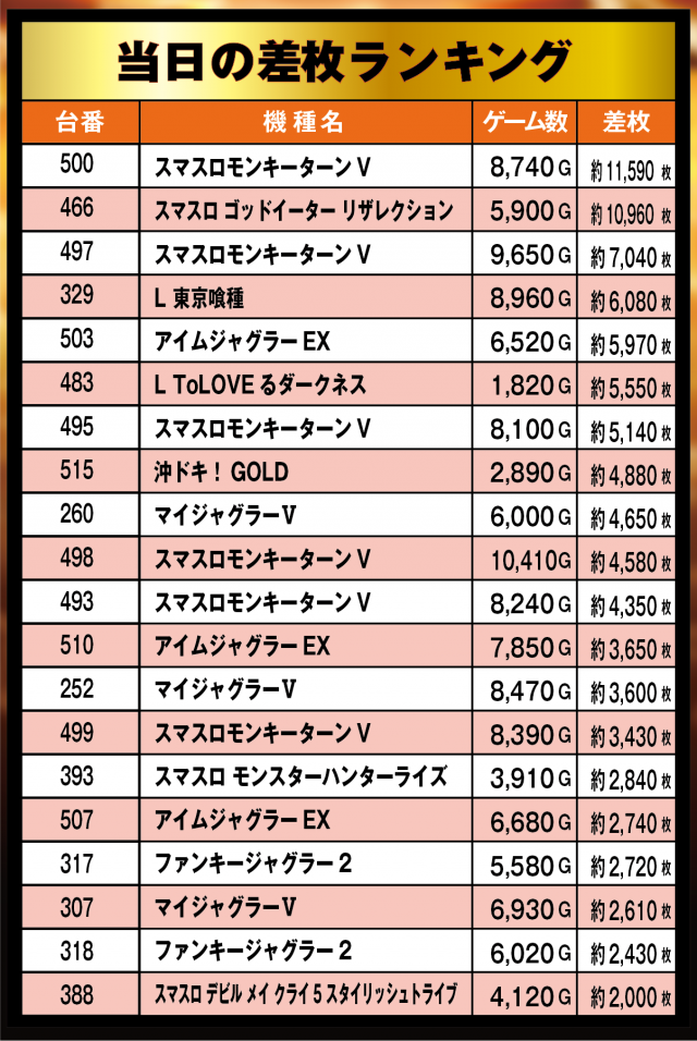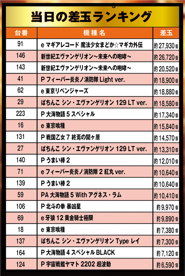 当日のパチンコランキングも必見!