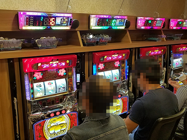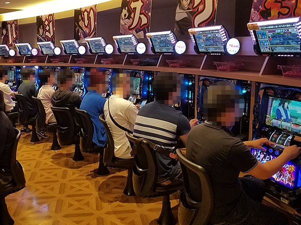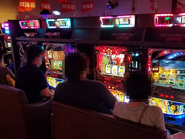 同じく「押忍!番長3」などもにぎやかな状況。ペアシートとなっており、隣同士楽しそうに遊技をおこなうプレイヤーの姿が印象に残っている。