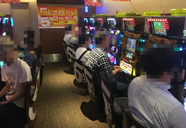 20円パチスロの状況をうかがうと、「押忍!番長3」と「バジリスク~甲賀忍法帖~絆」が盛況。プレイヤーたちは機種の特徴を活かし、充実感を得られている様子であった。