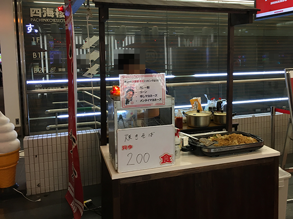 また、店の前には焼きそばや焼きうどんを販売する屋台がでていた。遊技とは違った楽しさを味わえることも、笑顔になれるポイントのひとつなのだろう。