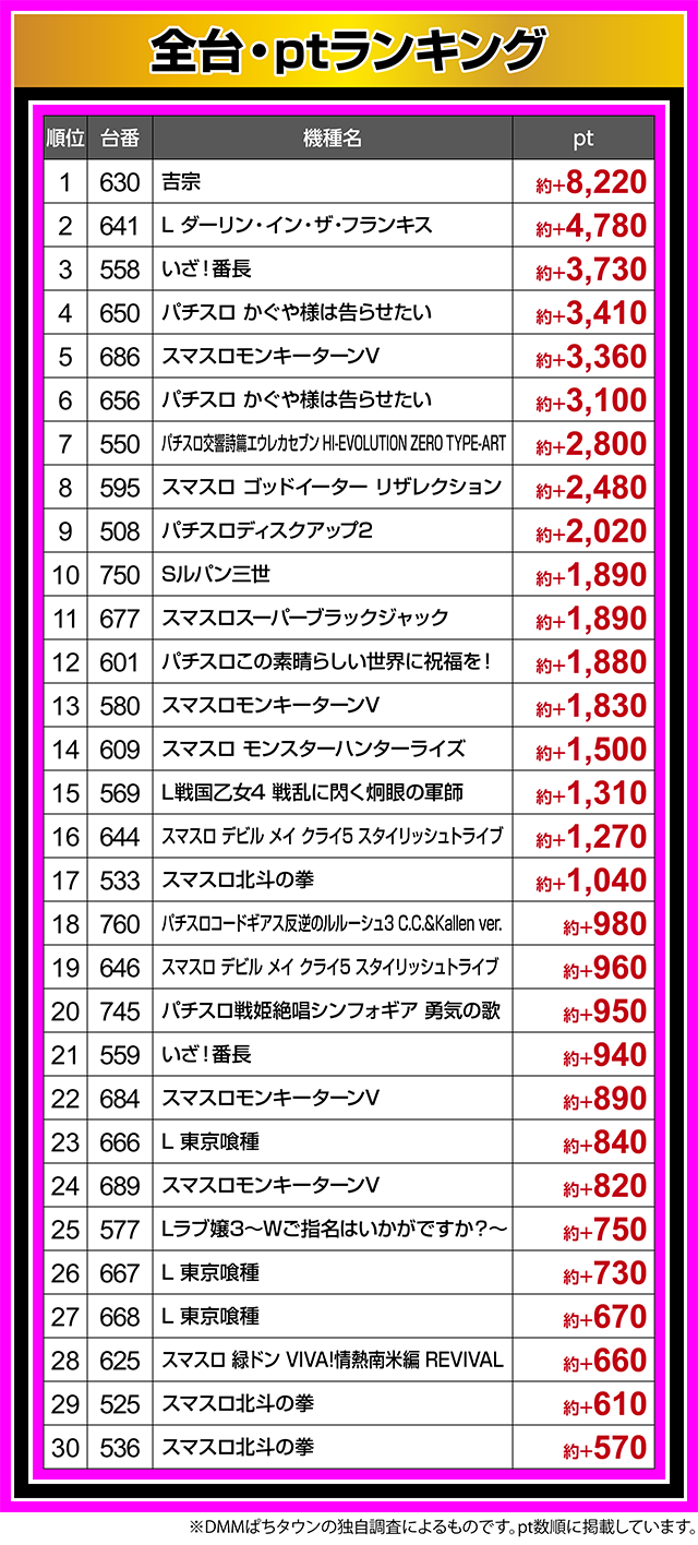 ※なお、本記事中のデータは全てDMMぱちタウンの独自調査によるものです
