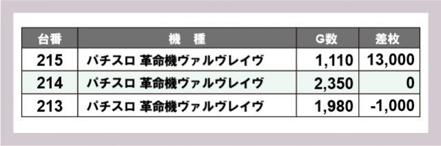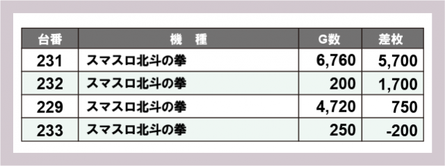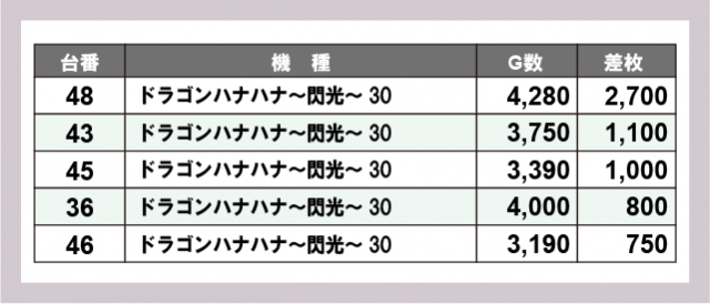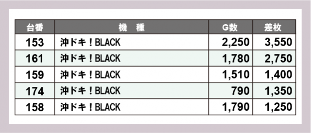 ※差枚数順に掲載しています