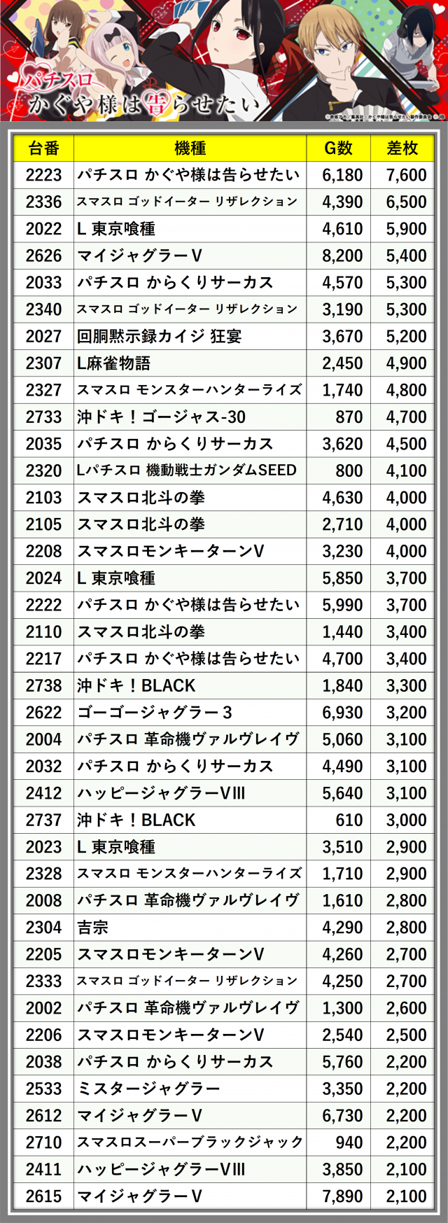 ※記事内の差枚表記はぱちタウン独自調査に基づくものです。ご了承ください。