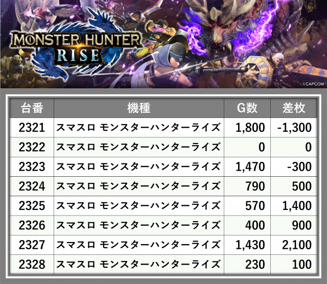 厳選された取材対象機種をはじめ、その他スロット全体から好記録が飛び出した!プレイヤーが楽しんだ1日を下記データにて振り返ってみて欲しい。